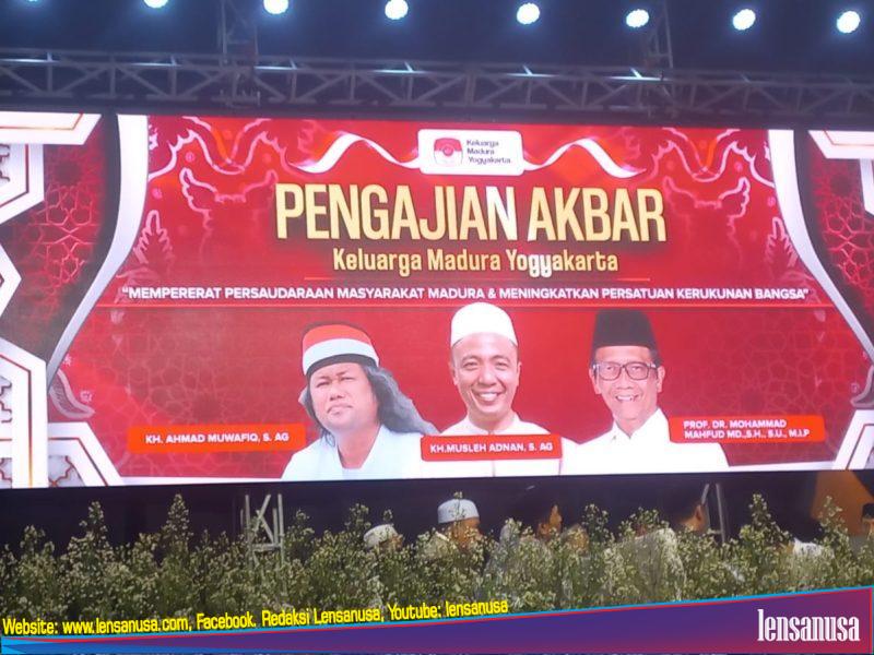 Pantauan awak media Lensanusa.com. di lokasi tampak hadir  Bupati Bantul H. Abdul Halim Muslih, Wakapolda DIY Brigjend Pol Eddy Junaidi, S.I.K, Danlanal Yogyakarta Kolonel Mar. Hafied Indarwan S.E., Kapolres Bantul  AKBP Novita Eka Sari, S.H., S.I.K., M.H,  Mayor Inf Sukapta, tokoh sesepuh Madura Prof. Dr. Asma’ie Ishak, M.Buss ,Ketua Keluarga Madura Yogyakarta R.B Jugil Adiningrat, S.H dan puluhan ribu jamaah dalam acara pengajian Akbar KMY dengan tema “Mempererat Persaudaraan Masyarakat Madura & Meningkatkan Persatuan Kerukunan Bangsa”,