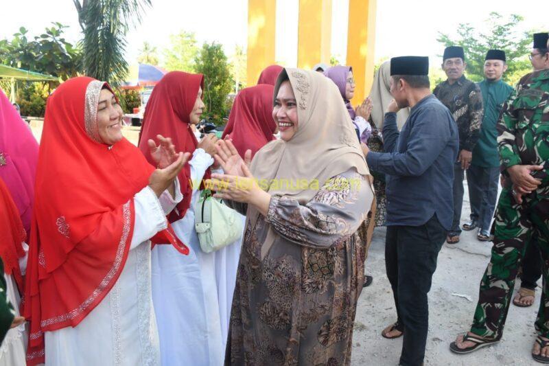 Setibanya di Masjid Faturrahman, Desa Sukamaju, Kecamatan Bantan, Bupati Kasmarni disambut antusias oleh masyarakat, Bupati Kasmarni juga tampak ramah saat berbincang dan melayani permintaan foto bersama warganya.