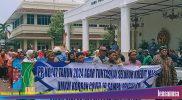 Massa aksi membawa poster dan spanduk bergambar Marsinah dengan berbagai tulisan “Persatuan Perjuangan Sambut Hari Depan, Kawal Revisi Rancangan Undang Undang Ketenagakerjaan Yang Adil Bagi Semua”.