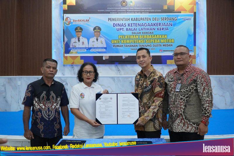 MEDAN | LENSANUSA.COM – Rumah Tahanan (Rutan) Kelas I Medan kembali menunjukkan komitmennya dalam membekali warga binaan dengan keterampilan yang berguna setelah bebas. Kali ini, Rutan Kelas I Medan bekerja sama dengan Dinas Ketenagakerjaan Kabupaten Deli Serdang menyelenggarakan Pelatihan Keterampilan Montir Sepeda Motor yang resmi dibuka pada. Jumat (10/10) di Aula Sahardjo Rutan.