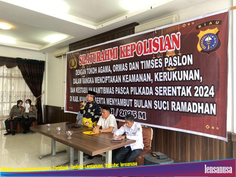 Sebagai langkah konkret, untuk menjaga situasi kamtibmas di wilayah Kab. Kuansing tetap kondusif maka Kepolisian Daerah (Polda) Riau melalui Direktorat Intelijen Keamanan melakukan Penguatan Koordinasi dan Kolaborasi dengan bekerjasama dengan Kemenag dan Kesbangpol Kab. Kuansing melaksanakan kegiatan di Rumah Makan Sederhana dengan tema: Silaturahmi Kepolisian dengan FKUB, Kesbangpol, Todat, Toga, Ormas dan Timses Paslon” dalam rangka menciptakan Keamanan, Kerukunan dan Kestabilan Kamtibmas Pasca Pilkada serentak tahun 2024 di Kab. Kuansing serta menyambut Bulan Suci Ramadhan 1446 H/2025 M.
