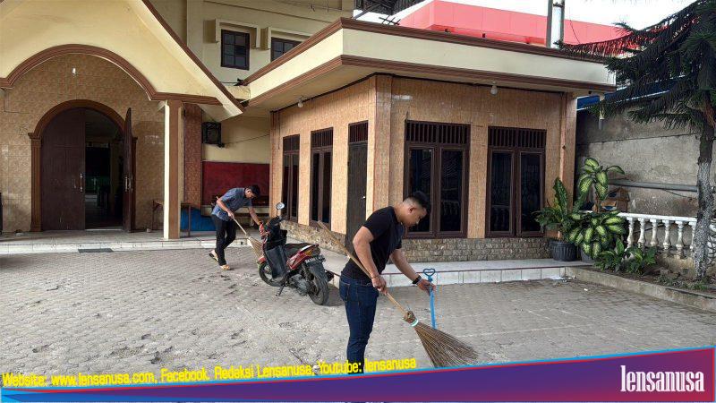 Bakti Religi meliputi pembersihan toilet dan halaman gereja, dilanjutkan dengan dokumentasi kegiatan dan foto bersama pengurus gereja sebagai simbol sinergi dan kebersamaan.