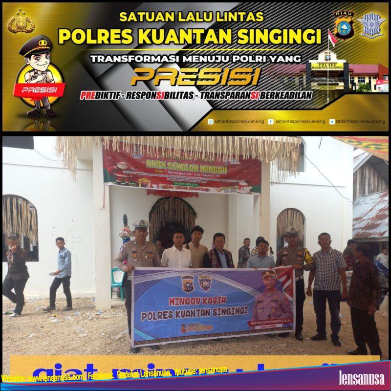 LENSANUSA.COM |TELUKKUANTAN,– Polres Kuantan Singingi (Kuansing) melalui Sat Lantas Polres Kuansing melaksanakan kegiatan bertajuk Minggu Kasih. Kegiatan ini berlangsung pada Minggu, (26/1/2025), pukul 09.00 WIB, bertempat di Gereja HKBP Kecamatan Kuantan Tengah, Kabupaten Kuansing. Acara ini dihadiri oleh Bripka Ario Nofirman, Brigadir Amri Sinaga dan Pengurus Gereja HKBP Kecamatan Kuantan Tengah.