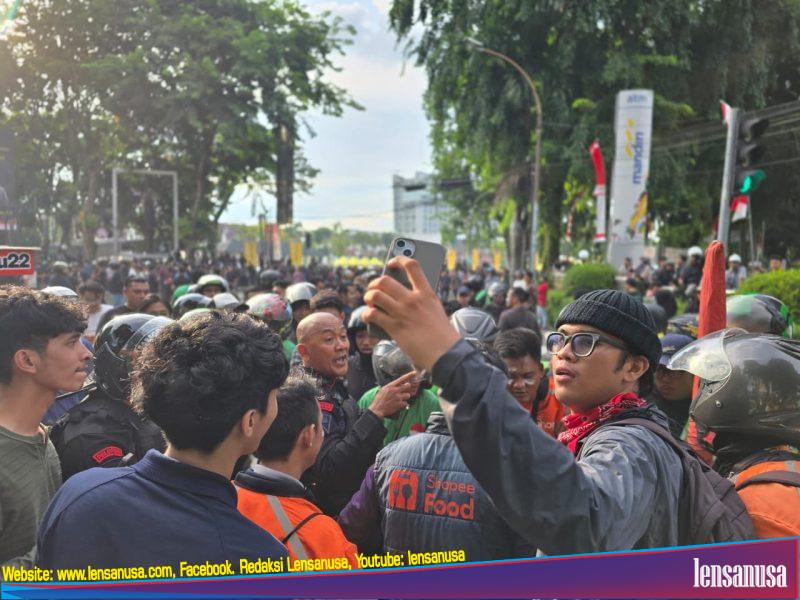 MEDAN | LENSANUSA.COM – Suasana hangat dan penuh keakraban menyelimuti halaman depan Kantor DPRD Provinsi Sumatera Utara, Sabtu (30/8/2025). Di tengah dinamika aksi yang berlangsung, personel Polda Sumut bersama Polrestabes Medan menghadirkan pendekatan berbeda dengan merangkul komunitas ojek online (ojol) dan mahasiswa untuk duduk bersama sambil menikmati kopi dingin.