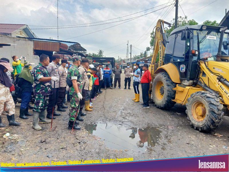 LANGKAT | LENSANUSA.COM – Personel Polsek Pangkalan susu bersama masyarakat Lingkungan V Kelurahan. Bukit Jengkol, membersihkan sampah yang menumpuk, Rabu (15/01/2025).