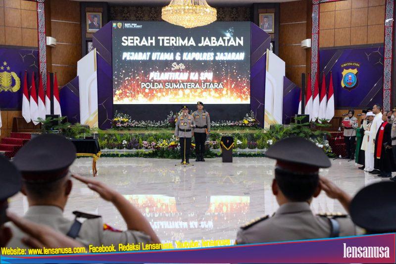 MEDAN | LENSANUSA.COM – Suasana penuh kehangatan sekaligus haru menyelimuti Aula Tribrata Polda Sumut, Rabu (9/7/2025), saat berlangsung upacara serah terima jabatan (sertijab) sejumlah Pejabat Utama dan Kapolres jajaran Polda Sumut.