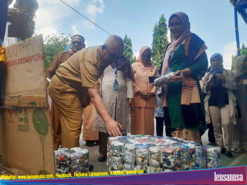 Memanfaatkan botoh plastik bekas dan kantong plastik, siswa mengolahnya menjadi produk ecobrick.