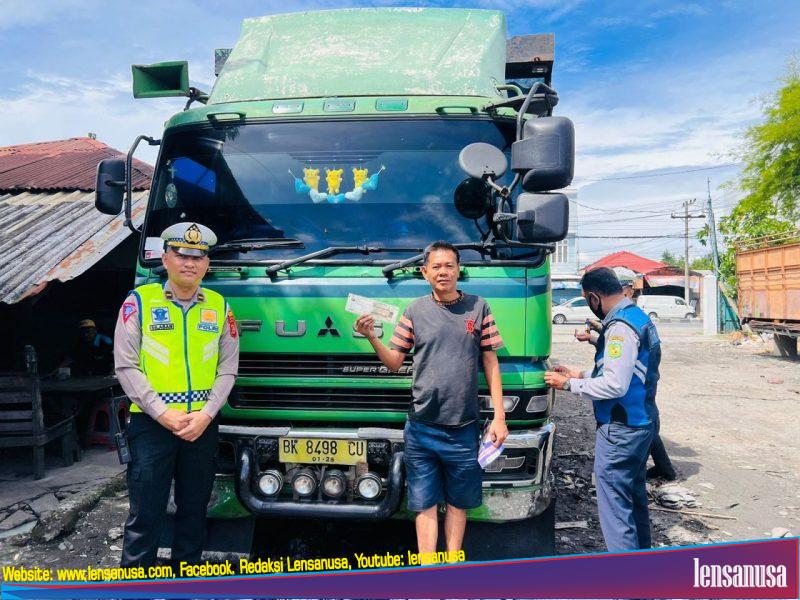 MEDAN | LENSANUSA.COM – Satuan Lalu Lintas (Satlantas) Polrestabes Medan, bekerja sama dengan Dinas Perhubungan (Dishub) Kota Medan, menggelar sosialisasi mengenai bahaya over load dan over dimensi kepada para pengemudi truk muatan di wilayah Jl. Letda Sujono – Jl. H. M. Yamin.