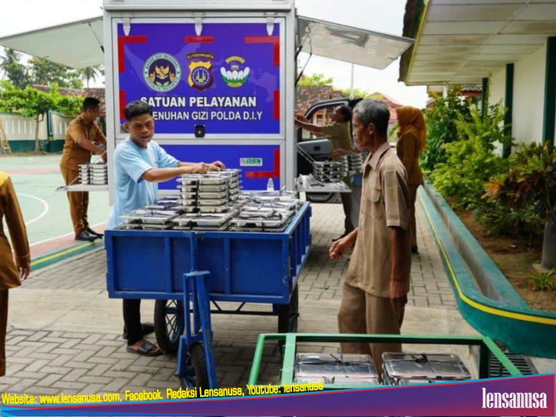 YOGYAKARTA | LENSANUSA.COM. – Untuk pertama kalinya, Dapur SPPG (Sarana Pendidikan dan Pengembangan Generasi) milik Polda DIY yang berlokasi di Mako Yon B Satbrimob Sentolo menyalurkan paket makan bergizi gratis kepada siswa sekolah pada hari Senin (14/7).