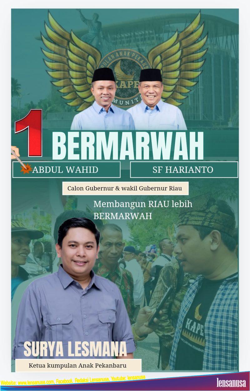 Maka dari itu kami meminta agar masyarakat provinsi Riau, khususnya masyarakat Pekanbaru untuk bisa memilih pasangan Abdul Wahid -Sf Harianto nanti nya, datang ke TPS, coblos no urut 1 untuk calon gubernur dan wakil gubernur Riau. Singkat nya”