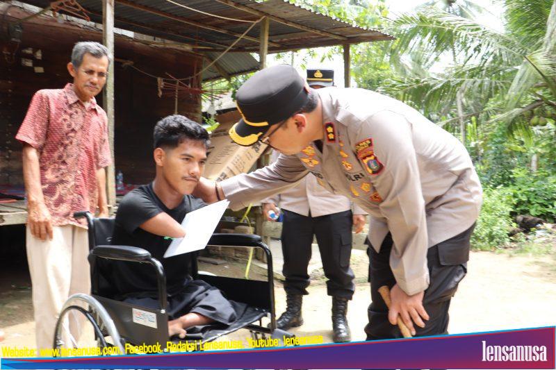 Kedatangan Kapolres Langkat, AKBP David Triyo Prasojo, SH, SIK, MSi., yang juga didampingi Wakapolres Kompol Husnil Mubarok Daulay, SH.SIK.MIK, tersebut dimaksudkan untuk memberikan bantuan tali asih berupa kursi roda bagi Rahmatullah yang mempunyai kebutuhan khusus atau penyandang disabilitas.