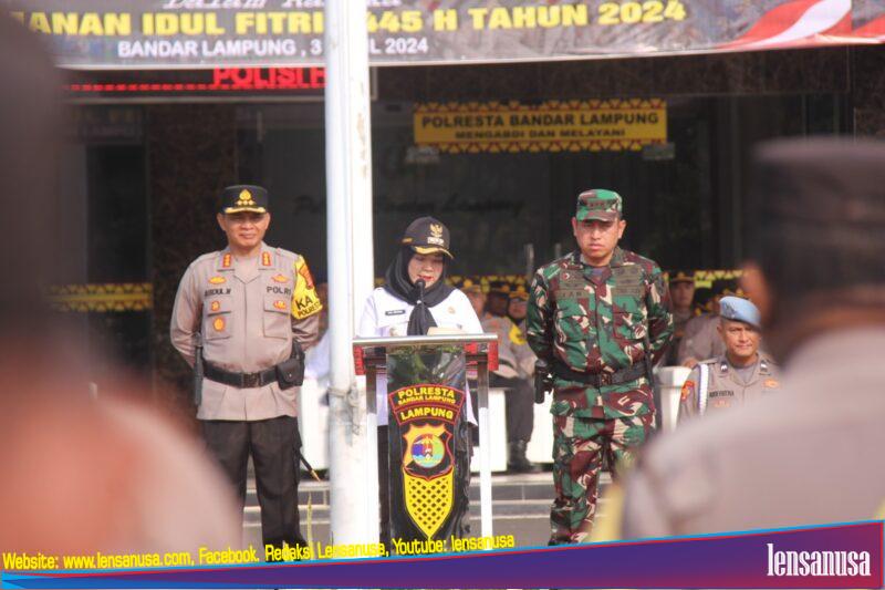Membacakan amanat Kepala Kepolisian Negara Republik Indonesia, Wali Kota Bandar Lampung Eva Dwiana mengatakan bahwa apel gelar ini dimaksudkan untuk pengecekan akhir kesiapan pelaksanaan operasi ketupat 2024 sebagai komitmen nyata sinergitas TNI/Polri dengan Stakeholder terkait dalam rangka pengamanan mudik dan perayaan hari Raya idul Fitri 1445 H.
