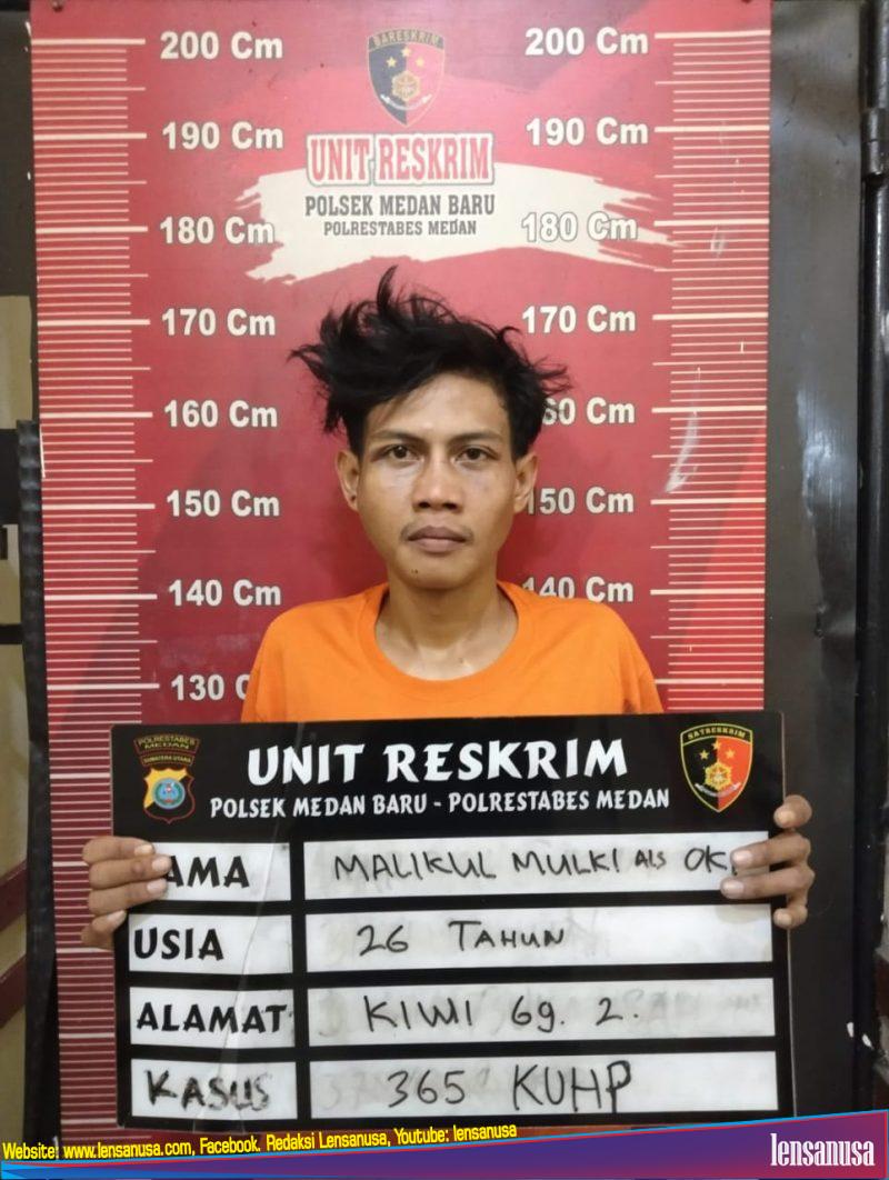Pelaku diketahui bernama Malikul Mulki alias Oki (26), warga Jalan Kiwi Gang Dua, Kelurahan Sei Sikambing B, Kecamatan Medan Sunggal. Ia ditangkap tidak lama setelah melakukan aksi kejahatannya.