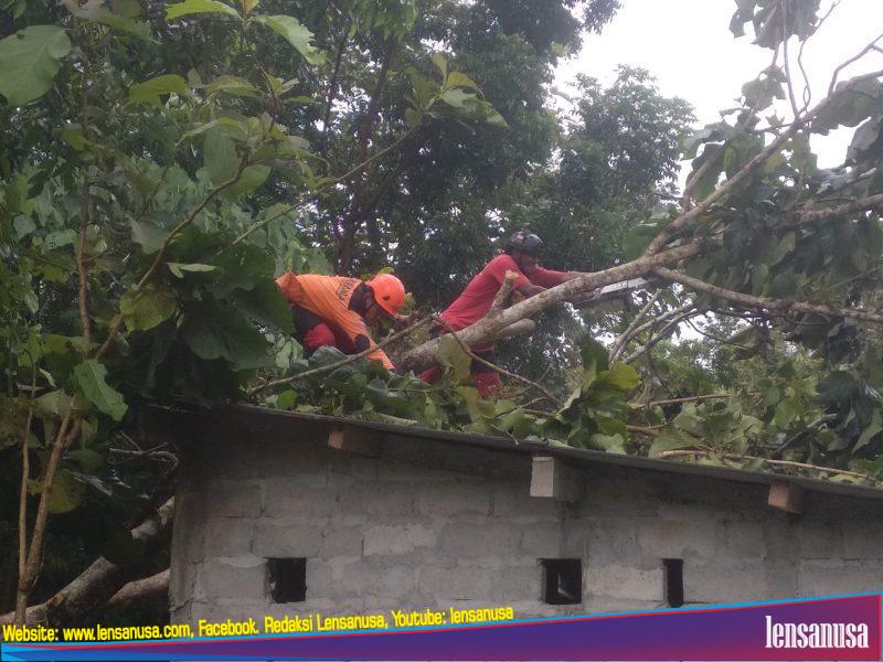 BANTUL | LENSANUSA.COM. – Hujan deras yang di sertai angin mengakibatkan salah satu pohon jati di pedukuhan Kayen Kalurahan Sendangsari Kapanewon Pajangan tumbang yang menimpa gudang,
