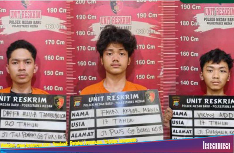Ketiga terduga pelaku ditangkap pada Sabtu (25/10/2025) siang. Mereka masing-masing berinisial DAT (20), FA (17), dan VA (17). Penyebutan nama lengkap dua terduga pelaku di bawah umur (Fahri Akbar Mani dan Vicky Adin) disamarkan (menjadi FA dan VA) sesuai pertimbangan etik jurnalistik terkait perlindungan anak dalam proses hukum, kecuali ada kepentingan publik yang mendesak. Ketiganya disebut-benar residivis yang diduga telah terlibat dalam belasan kasus begal dan pencurian kendaraan bermotor (curanmor) di Medan.