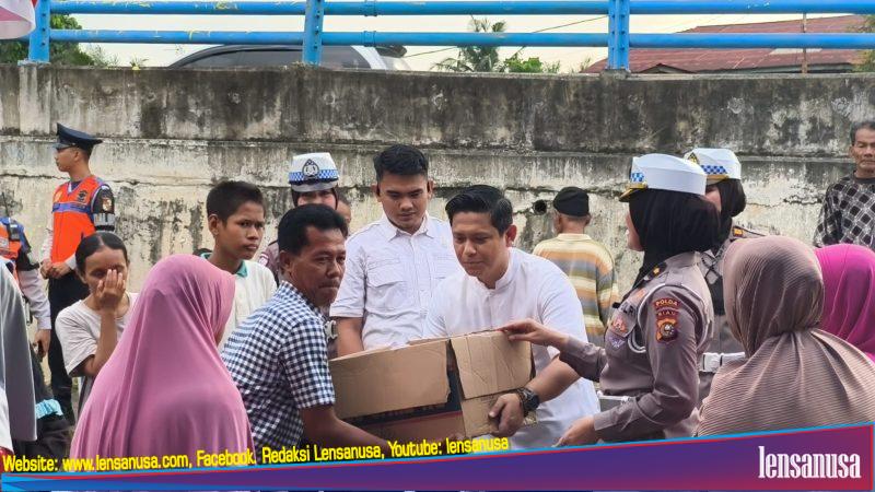LENSANUSA.COM | PEKANBARU,- Direktorat Lalu Lintas (Ditlantas) Polda Riau bersama Istansi terkait Maen Dealer dan Mahasiswa Riau berkolaborasi dengan melakukan kegiatan sosial dengan berbagi Paket Takjil kepada masyarakat yang terdampak banjir luapan air sungai Siak.