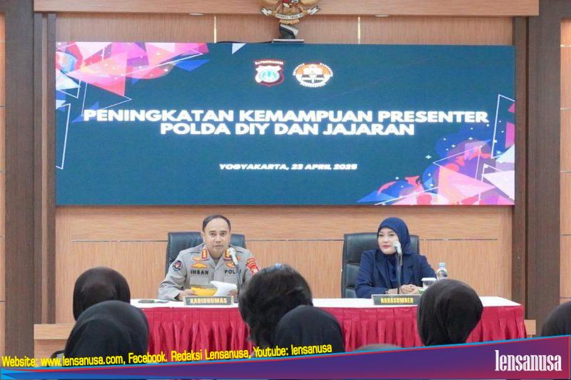 YOGYAKARTA | LENSANUSA.COM. – Dalam rangka meningkatkan kualitas komunikasi publik dan kemampuan public speaking, Polda DIY menggelar kegiatan Peningkatan Kemampuan Presenter bagi anggota Polda DIY dan Polres Jajaran, Rabu (23/42025).
