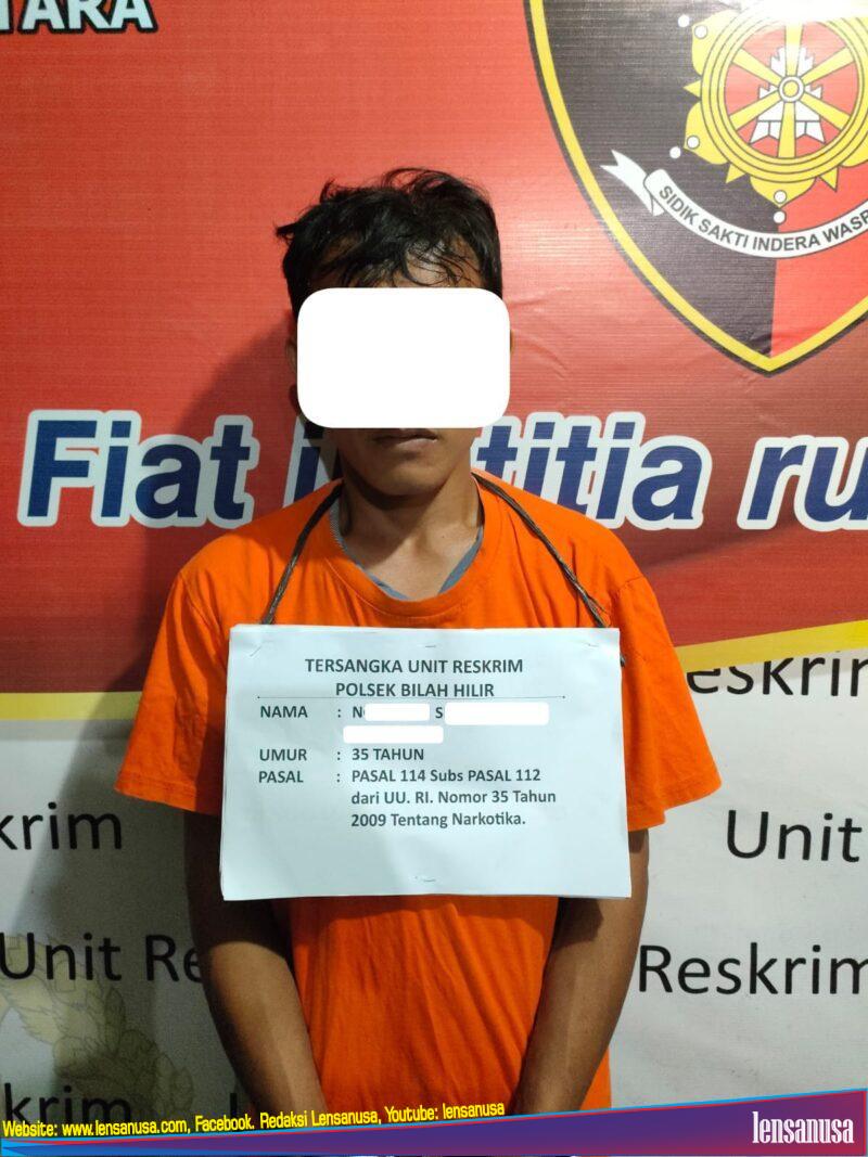 LABUHANBATU | LENSANUSA.COM- NS (35) Warga Dusun Sei Tarolat Kecamatan Bilah Hilir ditangkap di rumah tersangka oleh Team Opsnal yang dipimpin Kapolsek Bilah Hilir Iptu SM Lumban Gaol, SH. MH, Selasa (7/11/2023) sekira pukul 00.10 Wib