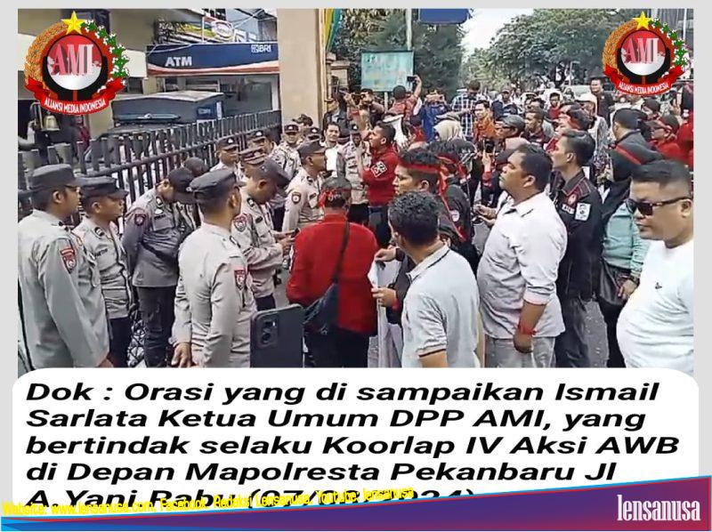 Didalam Aksi AWB yang terdiri dari berbagai Organisasi Pers yang ada di Pekanbaru,Media dan elemen masyarakat. Didalam Aksi Orasinya di depan Gerbang Mapolresta Pekanbaru, dengan menggunakan alat pengeras Toa Ismail Sarlata selaku Ketua Umum AMI sekaligus Koordinator Lapangan (Korlap) 4 (empat) dengan lantang mengatakan.