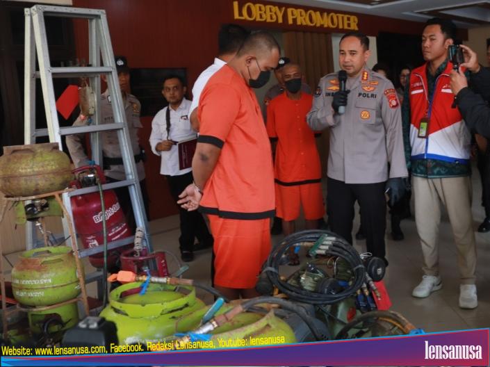 “Modus yang digunakan adalah memindahkan isi tabung LPG 3 kg ke tabung 5,5 kg dan 12 kg menggunakan alat bantu berupa kompresor dan water heater. Dalam sehari, pelaku mampu menjual hingga 30 tabung ukuran 12 kg dengan keuntungan mencapai Rp20 juta per bulan,” ungkapnya.