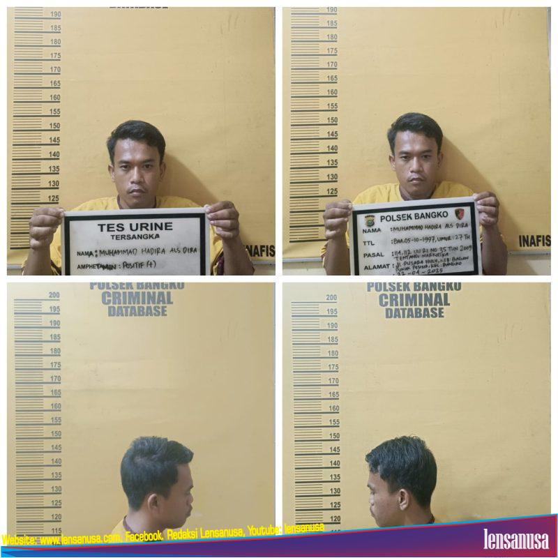 Pelaku yang diketahui bernama M Hadira alias Dira itu ditangkap tim Opsnal Polsek Bangko, berdasarkan laporan dari masyarakat bahwa di Jalan Pusara Hulu dan sekitarnya marak peredaran narkotika yang sangat meresahkan dan merusak generasi bangsa.