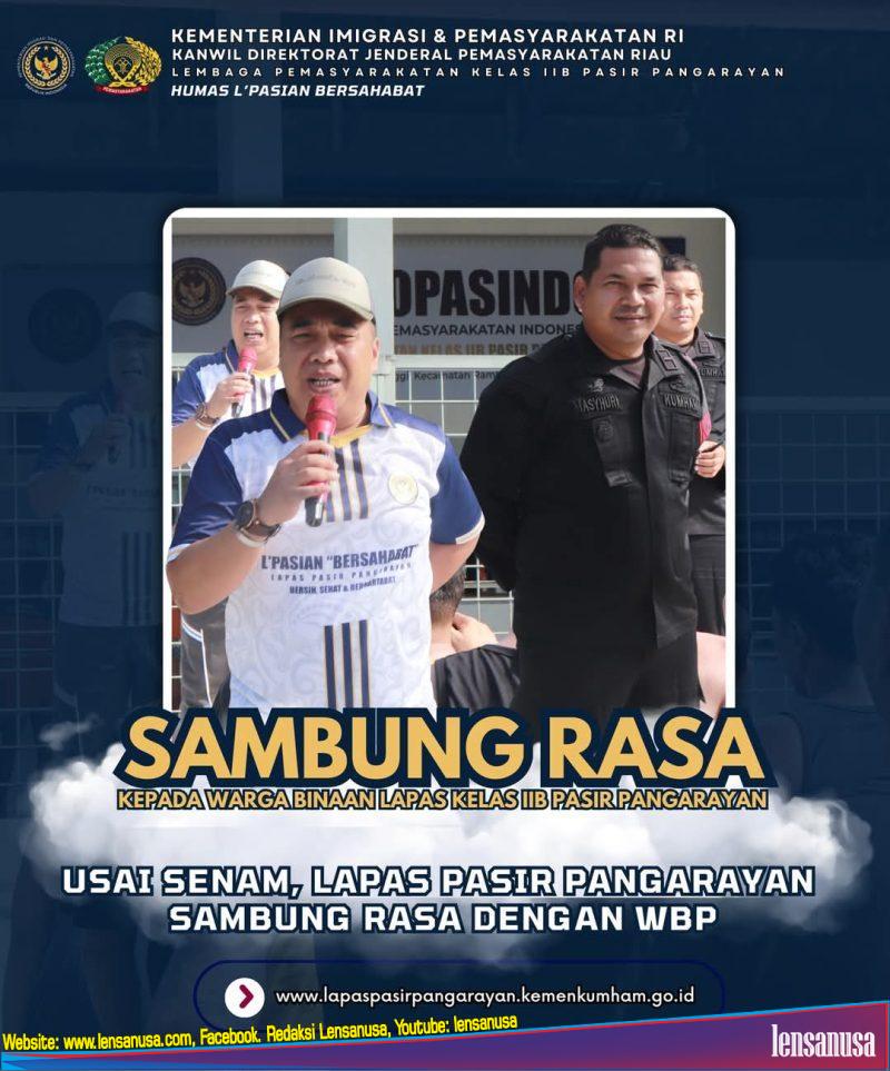 PASIR PANGARAYAN | LENSANUSA.COM – Kepala Lembaga Pemasyarakatan (Lapas) Kelas II B Pasir Pangarayan, Efendi Parlindungan Purba melalui Kepala Seksi Binadik & Giatja Sunu Istiqomah Danu menyapa para Warga Binaan Pemasyarakatan (WBP) melalui kegiatan berkala sambung rasa sekaligus kontrol Blok Hunian.
