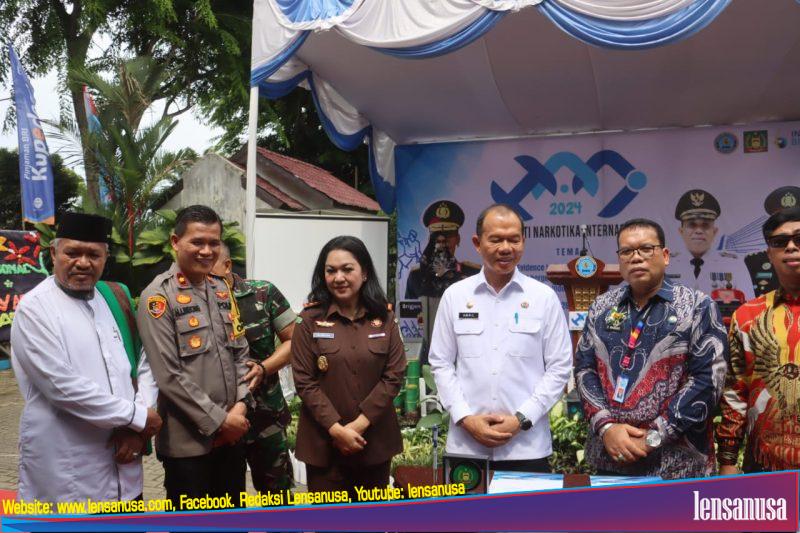 LANGKAT | LENSANUSA.COM – Kapolres Langkat AKBP Faisal Rahmat HS S.I.K., S.H., M.H di wakili oleh Wakapolres Kompol Henman Limbong, S.P., S.I.K., menghadiri puncak acara peringatan Hari Anti Narkotika Internasional (HANI) Tahun 2024 yang digelar oleh Badan Narkotika Nasional (BNN) Kabupaten Langkat, Rabu (26/6/2024).