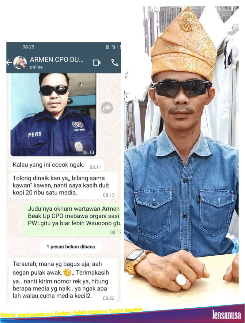 Pasalnya, munculnya pernyataan sikap Armen di Sosmed terkait usaha para pengusaha Cluide Palm Oil (CPO) di Wilayah Dumai, Provinsi Riau, Armen mengaku sebagai Pahlawan Back Up CPO, lalu menyebut profesi “kalian” (semua Wartawan_red) adalah Wartawan Amplop dan Wartawan dengan kelas jatah Rp 20.000 serta Tikus-Tikus kecil.