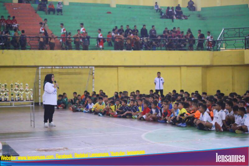 LABUHANBATU | LENSANUSA.COM – Wakil Bupati Labuhanbatu Hj. Ellya Rosa Siregar S.Pd.,MM membuka Turnamen Futsal Antar Pelajar SD dan SMP Putra/Putri SE Labuhanbatu, di Gedung Olahraga Rantauprapat. Kecamatan Bilah Barat. Jumat (20/10/2023).