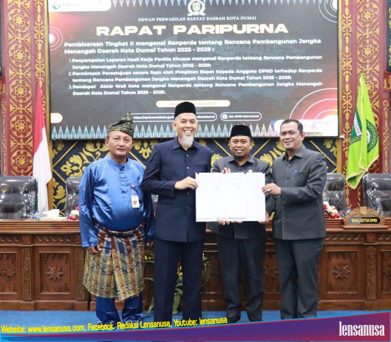 DUMAI | LENSANUSA.COM – Pemerintah Kota (Pemko) Dumai kini memiliki landasan hukum yang kuat untuk melaksanakan program pembangunan lima tahun ke depan. Hal ini menyusul disahkannya Rancangan Peraturan Daerah (Ranperda) tentang Rencana Pembangunan Jangka Menengah Daerah (RPJMD) Kota Dumai tahun 2025-2029.