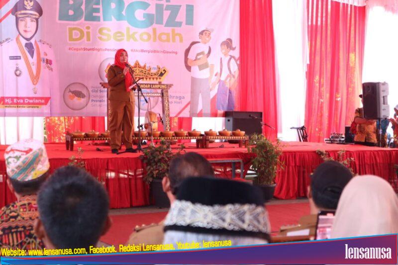 Dalam sambutan Walikota Bandar Lampung Hj. Eva Dwiana menyampaikan “Stunting adalah kondisi gagal tumbuh pada balita akibat kurang gizi berkepanjangan satu dari empat anak Indonesia terkena stunting. Salah satu faktor penyebabnya adalah anemia (kurang darah) yang terjadi pada remaja putri dan ibu hamil”.