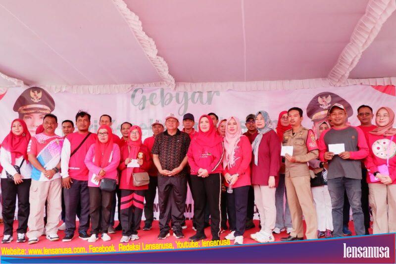 Walikota Bandar Lampung, Hj. Eva Dwiana menghadiri Kegiatan Gebyar Hari Kesehatan Nasional yang bertempat di Taman UMKM Bung Karno pada Minggu, 26 November 2023