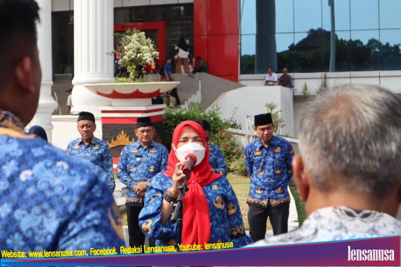Walikota Bandar lampung Hj.Eva Dwiana, pimpin langsung serah terima kendaraan dinas operasional roda dua untuk para lurah se- Kota Bandar lampung,