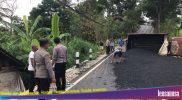 Tak Kuat Menanjak,Truk Muatan Aspal Terguling di Jalan Patuk-Dlingo