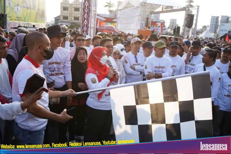 Ribuan warga Kota Bandar Lampung antusias mengikuti jalan sehat di Tugu Adipura. Kegiatan ini merupakan acara puncak Kirab Pemilu 2024 di Kota Tapis Berseri.