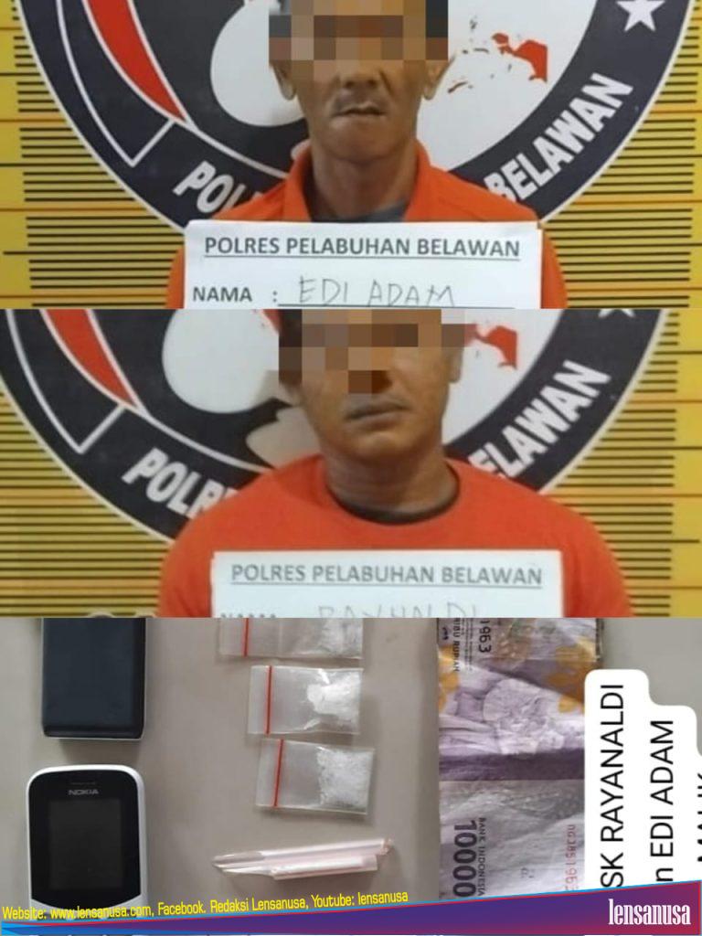 Kedua tersangka yang ditangkap yakni Reynaldi (37), warga Stabat, dan Edi (43), warga Desa Kota Datar. Penangkapan dilakukan berdasarkan informasi dari masyarakat yang resah atas maraknya aktivitas peredaran narkoba di lingkungan tersebut.
