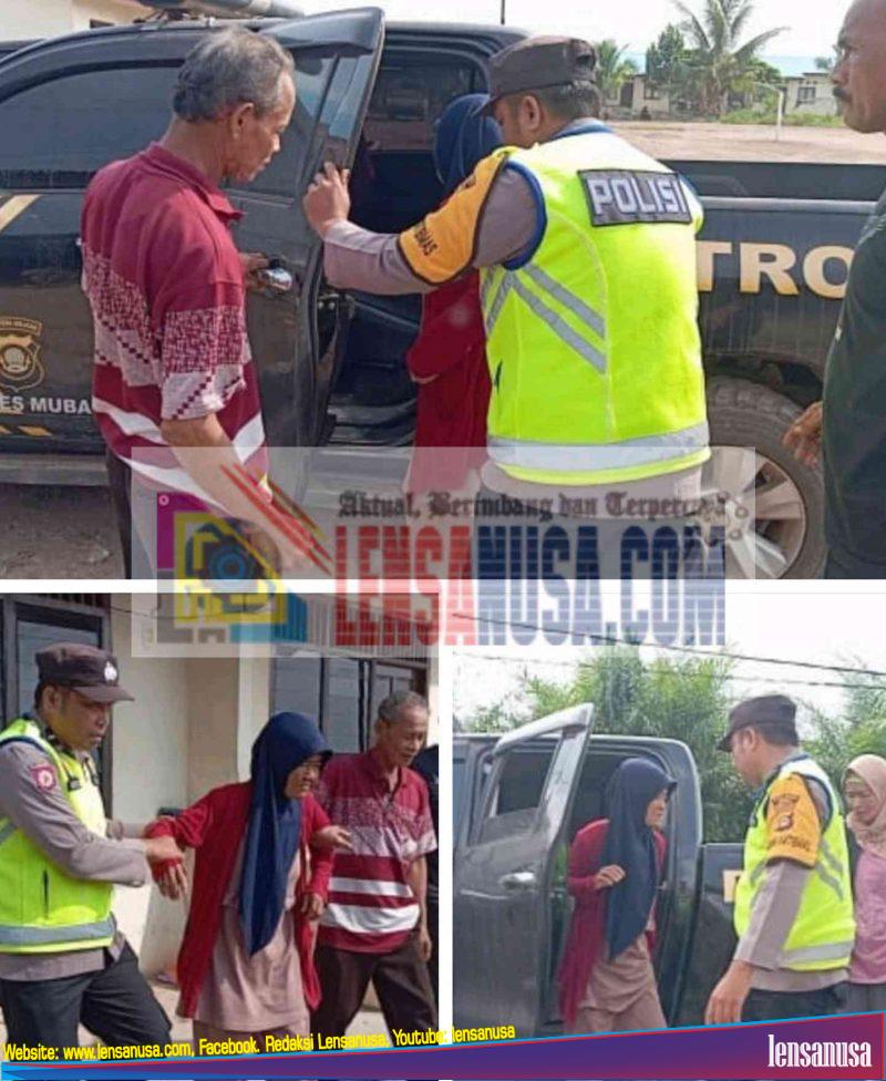 Bersama pihak keluarga, Bhabinkamtibmas Polsek Lalan Aipda Heryansyah membantu mengantarkan warga yang sedang sakit dengan mobil patrolinya.