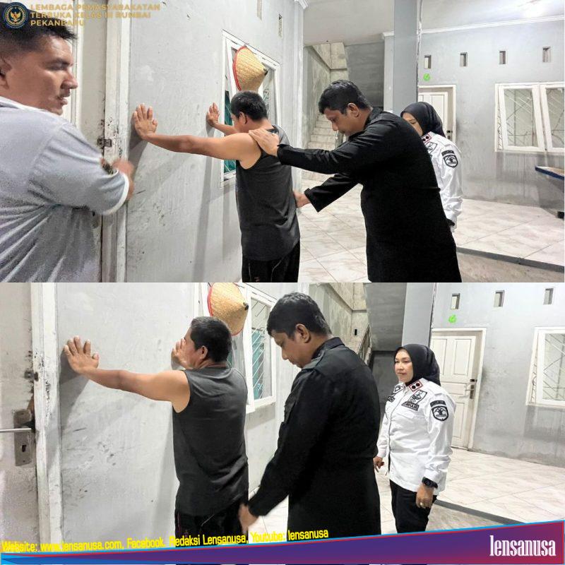 LENSANUSA.COM | PEKANBARU– Lembaga Pemasyarakatan (Lapas) Terbuka Kelas III Rumbai menggelar razia ganungan kamar hunian Warga Binaan Pemasyarakatan (WBP) pada Jum’at (24/1/25) malam.